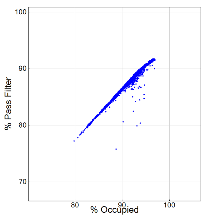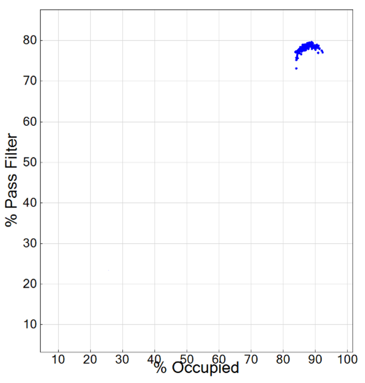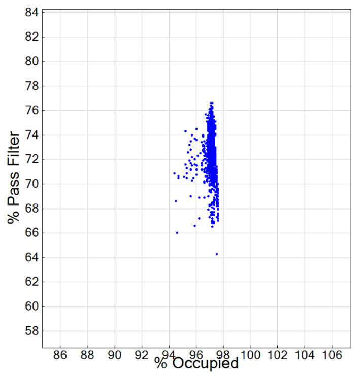 点有一些轻微的负斜率、接近垂直,并且% Occupied高达90以上, % Pass Filter的变化幅度较大