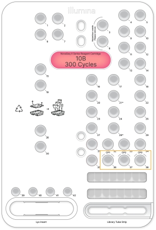 The NovaSeq X Series supports Custom Primers using three available Custom Primer (CP) wells on the reagent cartridge. The custom primers will be diluted in the NovaSeq X Series Custom-Primer buffer, available from the NovaSeq X Series Reagents Kits page on the Illumina website. Sequencing run setup and limitations will vary depending on Control Software version, see below for details.