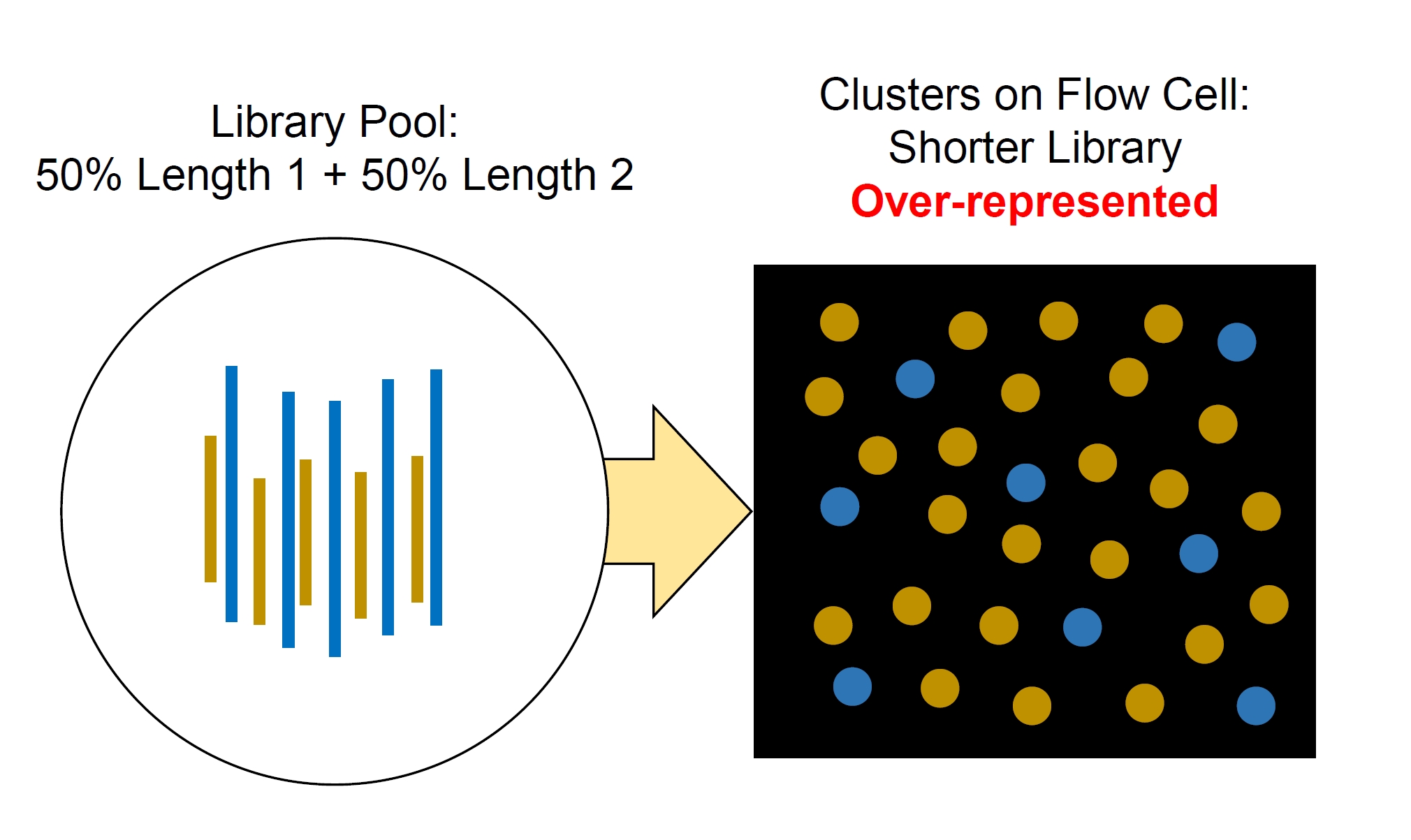 图1:同一个文库混合物中含有相同比例的两种不同长度的文库,这会导致较短片段文库的过度表达